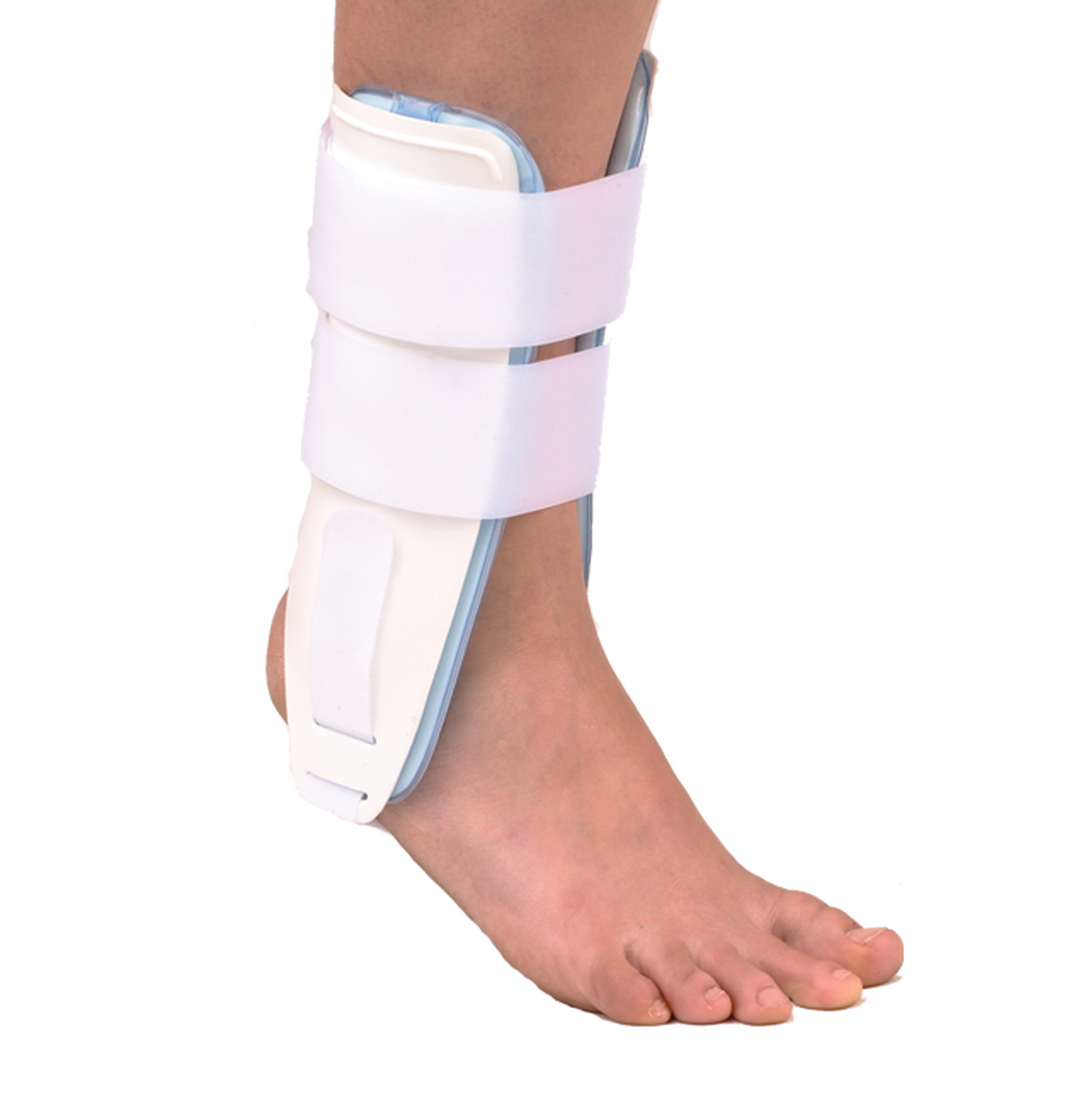 Air Cushion Ankle Support Regular (16-0050) This is a plastic stirrup ankle brace with air-filled bladder liners that provides medial/lateral support and compression to the ankle joint. Ideal for acute ankle sprains Foam inside the bladder eliminates deflation, and air can be added or removed with the tube that is provided Has two circumferential Velcro straps SizeLengthProduct Number Small 9″ 16-0030 Trainer 9.5″ 16-0040 Regular 10″ 16-0050