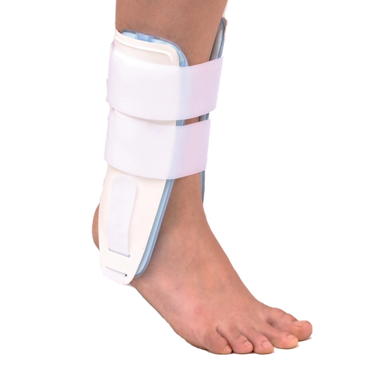 Air Cushion Ankle Support Small (16-0030) This is a plastic stirrup ankle brace with air-filled bladder liners that provides medial/lateral support and compression to the ankle joint. Ideal for acute ankle sprains Foam inside the bladder eliminates deflation, and air can be added or removed with the tube that is provided Has two circumferential Velcro straps SizeLengthProduct Number Small 9″ 16-0030 Trainer 9.5″ 16-0040 Regular 10″ 16-0050