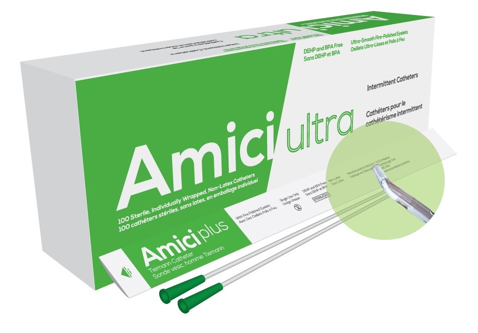 AMICI Ultra 16″ 14 Fr. Tiemann Intermittent Catheters, Fire-Polished eyelets, Latex Free, DEHP & BpA Free PVC
