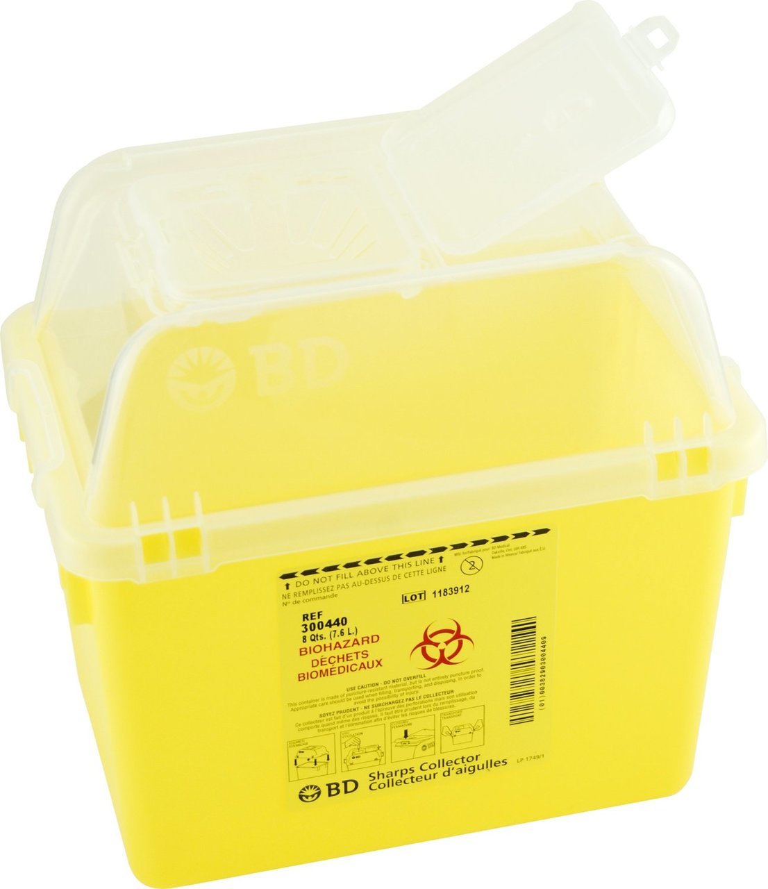 BD 300440 SHARPS Collector NESTABLE Funnel top 2 handles 7.6L (6.7qt), Case of 24