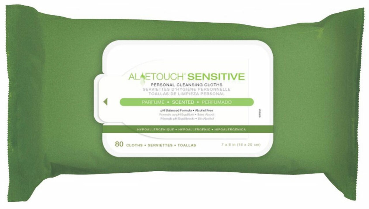 ALOETOUCH SELECT The Flip N Seal closure on Aloetouch Select packs reduces the amount of plastic in the lid by 71%, while keeping the wipes fresh for weeks. Unlike oldstyle adhesive film closures, Flip N Seal opens easily with one hand and stays open until you close it. Aloetouch Select is the choice for people who want a little more in their cleansing wipe. The gentle, sulfate-free cleansing solution and aloe-rich skin conditioners permeate a heavier-weight wipe. You may find that you use fewer wipes to get the job done. Premium Spunlace Personal Cleansing Wipes Aloetouch super-soft, single patient use, spunlace wipes are gentle on the skin. Versatile and convenient wipes are ideal for everyday clean-ups and incontinence care. Wipes are pre-moistened with rinse-free formula that cleans, moisturizes and soothes the skin. Formula is pH balanced, hypoallergenic and does not contain alcohol. Available with a light, gender-neutral scent or fragrance free Specifications Absorbent Material Spunlace. Alcohol Free Yes. Antibacterial Type Non-Antibacterial. Area of Application All Over Body-Perineal. Brand Aloetouch. Container Type Soft Pack w/Flip ‘n Seal Lid. Contains Dimethicone No. Flushable No. Fragrance Yes. HPIS Code 694_20_60_0 Latex Free Yes. Length Inches 8 in. Product Type Wipe. UNSPSC 53131624 Width Inches 7 in. Wipe Type Personal Use.