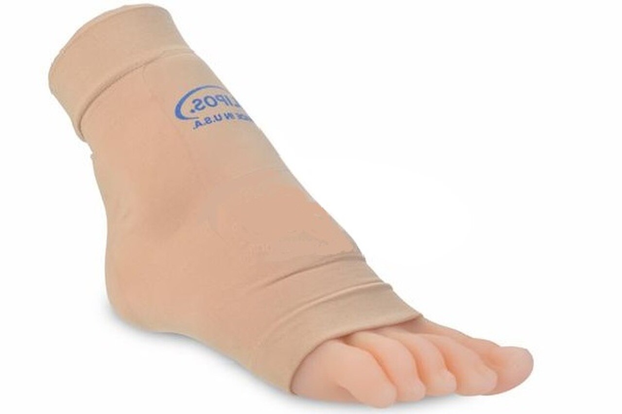 Silipos Gel Boot Bumper Large (35187) Foot products are not returnable once removed from sealed packaging. See return policy Before you use any product for health care, we advise that you consult your physician or primary healthcare provider and seek the appropriate advice and supervision prior to use The Silipos Gel Boot Bumper Sleeve protects the front and back of the lower leg and heel. Two thick gel pads provide optimum absorption of pressure, abrasion and shear forces while releasing medical grade mineral oil to help soften and moisturize the skin. If ankle braces, boots, or high top shoes cause uncomfortable foot pressure on the front and back of the ankle, this low profile, gel-lined boot bumper will cushion and protect this sensitive area. The gel pads provide added comfort to prevent pressure sores, rubbing and blisters. The spandex – nylon fabric comfortably stretches across the foot and ankle and provides light compression to the foot and ankle. This latex free fabric provides a snug fit under socks or hosiery without adding bulk. Silipos Gel Boot Bumper Sleeve Features:Helps protect the foot and ankle from pressure sores, rubbing, and blisters without adding bulk.Provides light compression.Latex free and hypoallergenic.Gel pads moisturize and absorb friction. Silipos Gel Boot Bumper Sleeve Specifications:Small/Medium fits: Ankle Circumference 7 – 10 inches.Large/Extra-Large fits: Ankle Circumference 9 – 12 inches.Includes: one sleeve per package.Material: Latex free, spandex, nylon.Color: Beige.Made in: USA.