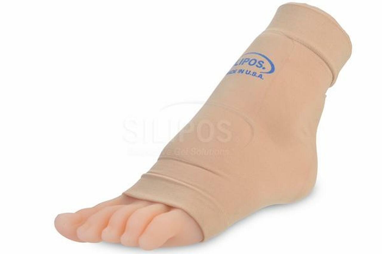 Silipos Gel Boot Bumper Small (35186) The Silipos Gel Boot Bumper Sleeve protects the front and back of the lower leg and heel. Two thick gel pads provide optimum absorption of pressure, abrasion and shear forces while releasing medical grade mineral oil to help soften and moisturize the skin. If ankle braces, boots, or high top shoes cause uncomfortable foot pressure on the front and back of the ankle, this low profile, gel-lined boot bumper will cushion and protect this sensitive area. The gel pads provide added comfort to prevent pressure sores, rubbing and blisters. The spandex – nylon fabric comfortably stretches across the foot and ankle and provides light compression to the foot and ankle. This latex free fabric provides a snug fit under socks or hosiery without adding bulk. Silipos Gel Boot Bumper Sleeve Features:Helps protect the foot and ankle from pressure sores, rubbing, and blisters without adding bulk.Provides light compression.Latex free and hypoallergenic.Gel pads moisturize and absorb friction. Silipos Gel Boot Bumper Sleeve Specifications:Small/Medium fits: Ankle Circumference 7 – 10 inches.Large/Extra-Large fits: Ankle Circumference 9 – 12 inches.Includes: one sleeve per package.Material: Latex free, spandex, nylon.Color: Beige. Helps protect the foot and ankle from abrasions without the added bulk Effective in protecting against discomfort caused by ski boots, skates, cleats, and other athletic footwear Provides light compression to the foot and ankle Latex free and hypoallergenic